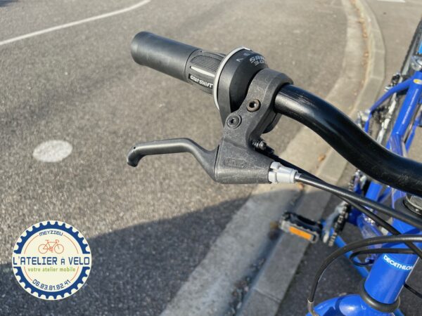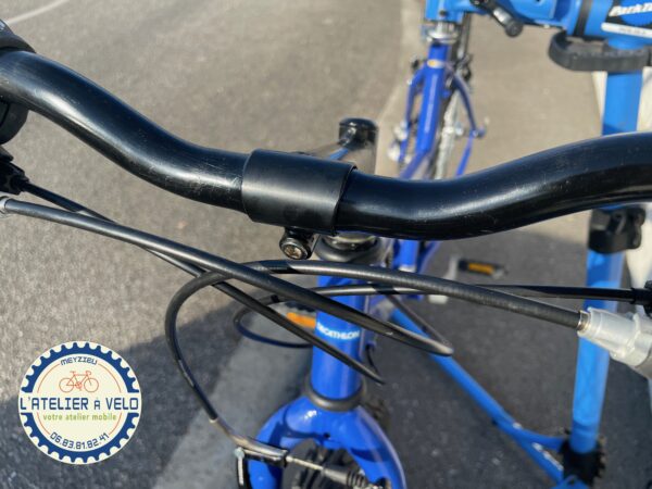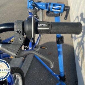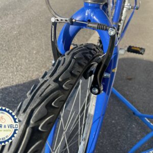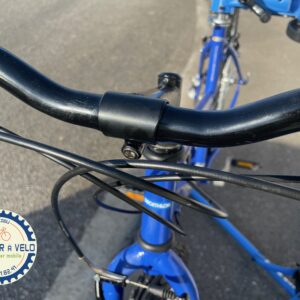 Commentaire : Vélo d’occasion qui était économiquement non réparable. Petit nouveau en occasion d’un client du bout de la rue qui ne souhaitait pas le faire réparer. Au lieu de le mettre à la déchèterie, il nous l’a donné pour lui offrir une seconde chance. Avec une révision, changement de cables et gaines, de chaine, de poignées tournantes et d’étriers de frein, il est à 86 euros.. les principales pièces changées pour un fonctionnement optimum. Le vélo est entièrement révisé. En plus en l’achetant vous participez aux recyclage des vélos que l’on nous donne. En savoir plus sur le recyclage des vélos d’occasion.