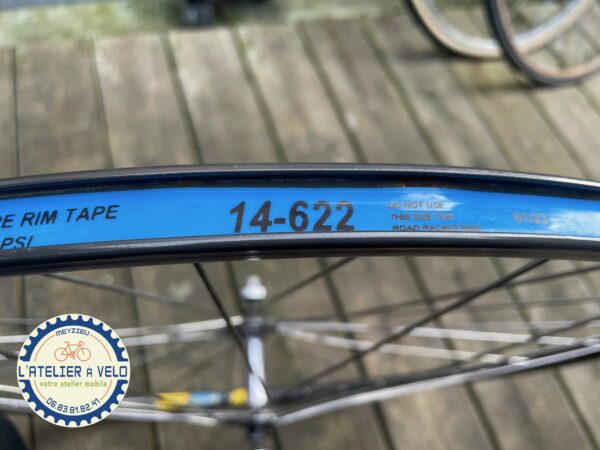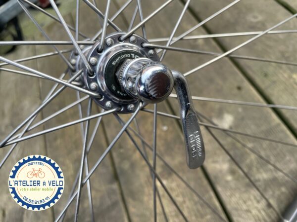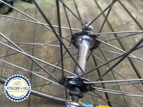 Roue avant 700 route moyeu Shimano 105 et cercle MAVIC avec fond de jante.